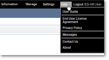 Navigation menus appear in the main section of the EQ-Hit window. Menu choices are displayed as thumbnail images or as lists.