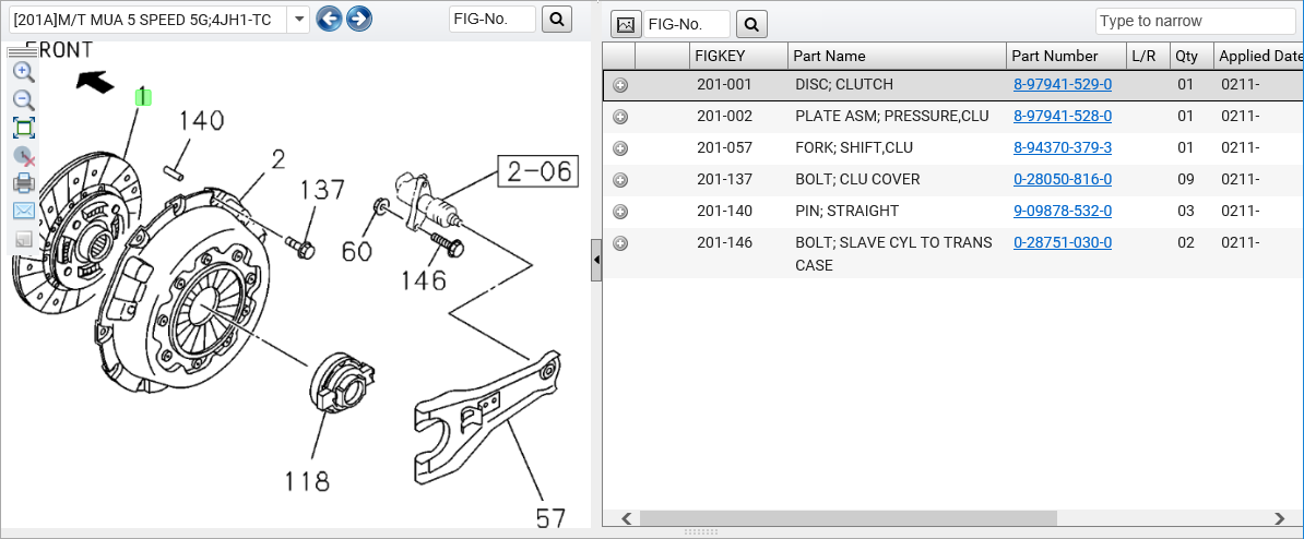 The side-by-side Illustration and Parts List appears when you navigate to a vehicle, section, and figure: